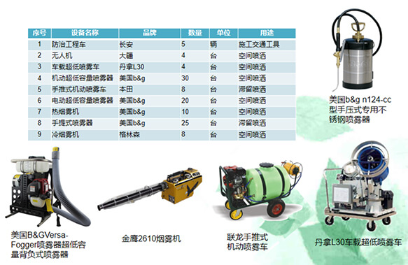 具有行業(yè)先進的設(shè)備,美國B&GVersa-Fogger噴霧器超低容量背負式噴霧器30臺、電動超低容量噴霧器20臺、熱煙霧機10臺、手提式噴霧器25臺......